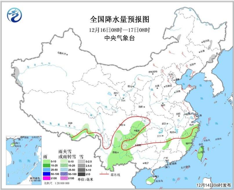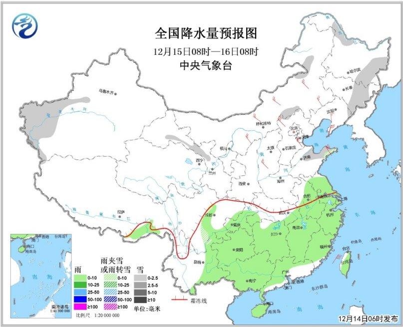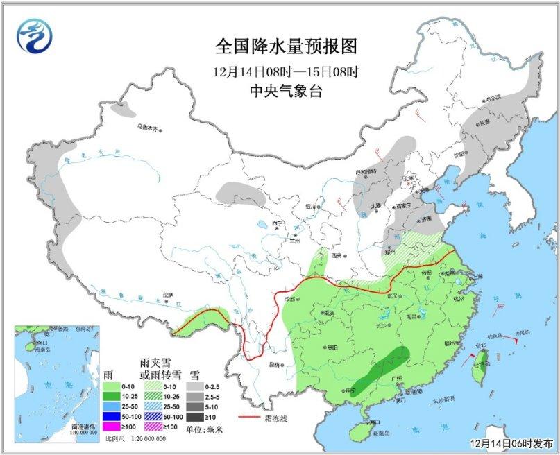 From 14th to 15th, there was light snow or sleet in North China, Huanghuai, Northeast China and other places, and the dividing line between rain and snow was located in Qinling to Huaihe River. In addition, there are light rains in the eastern part of the southwest, Jianghan, Jianghuai, Jiangnan and South China, and local rains.